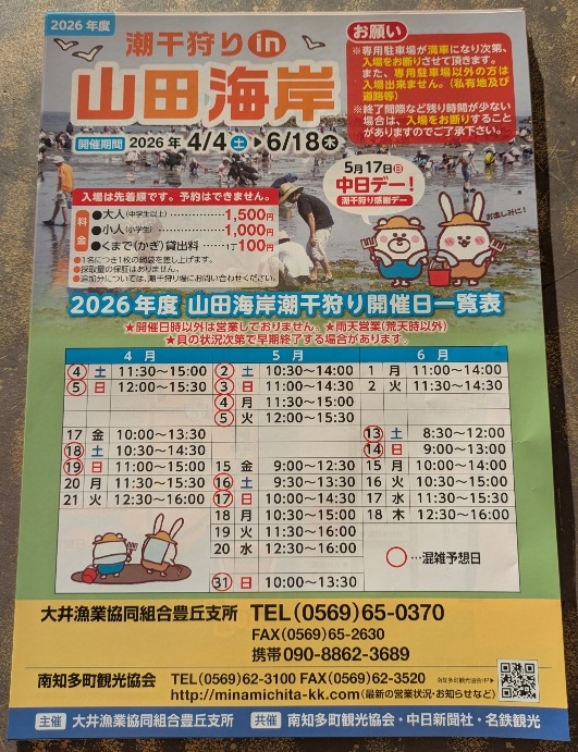 春の南知多へ行こう!③ 『潮干狩りin山田海岸』4/4~6/18