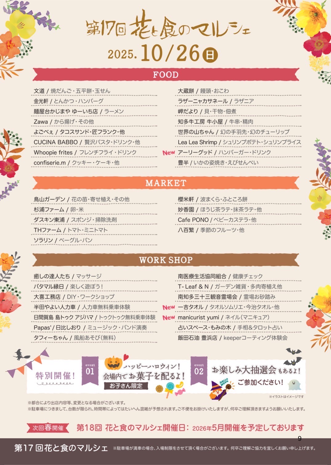 知多で秋を楽しもう♪第17回 🌼 花と食のマルシェ🍂🍄開催!